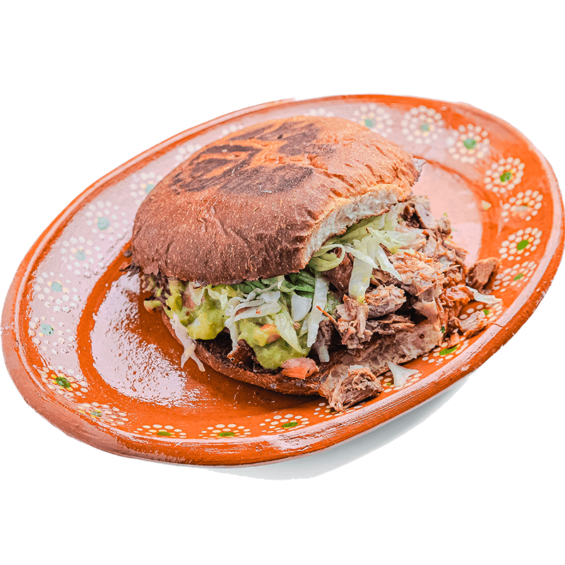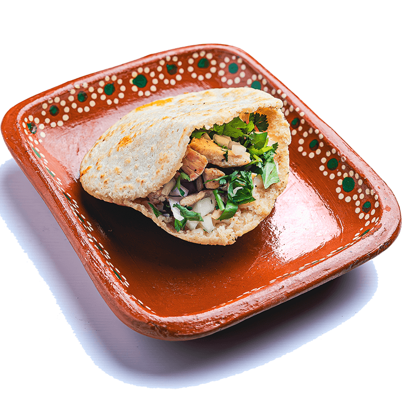 Flat crispy tortilla, beans, choice of meat, lettuce, pico de gallo, sour cream and cotija cheese.