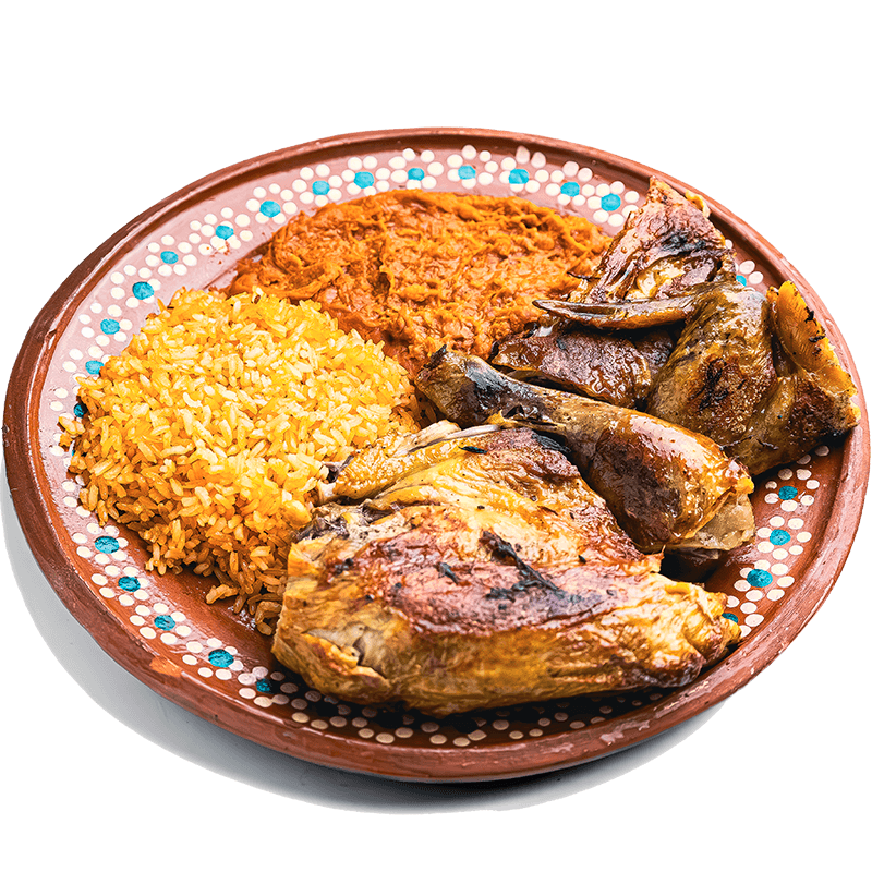 4 crispy rolled up tacos filled with chicken lettuce, pico de gallo, sour cream, cotija cheese with side of rice and beans.